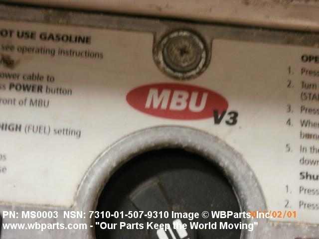 NSN 7310-01-507-9310 MS0003, PD MBU-001, PDMBU001