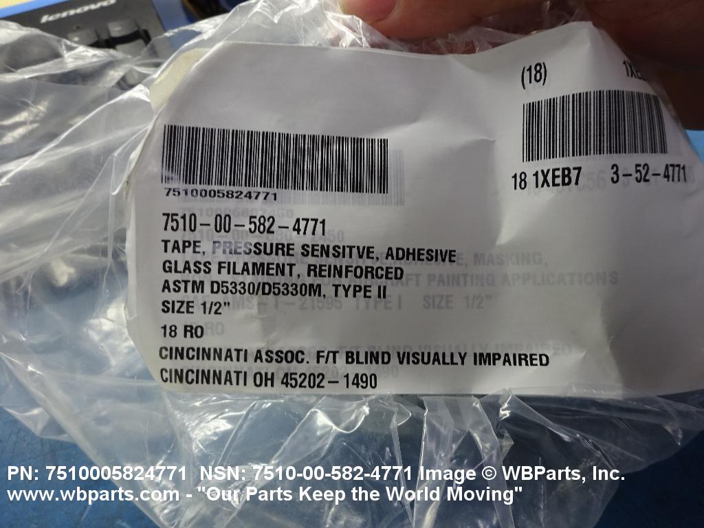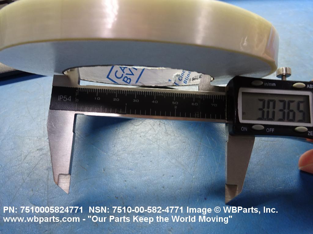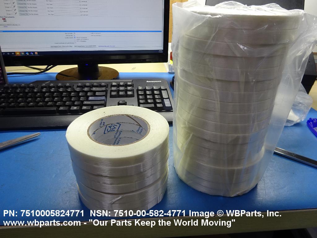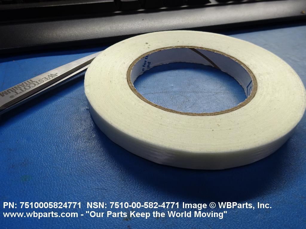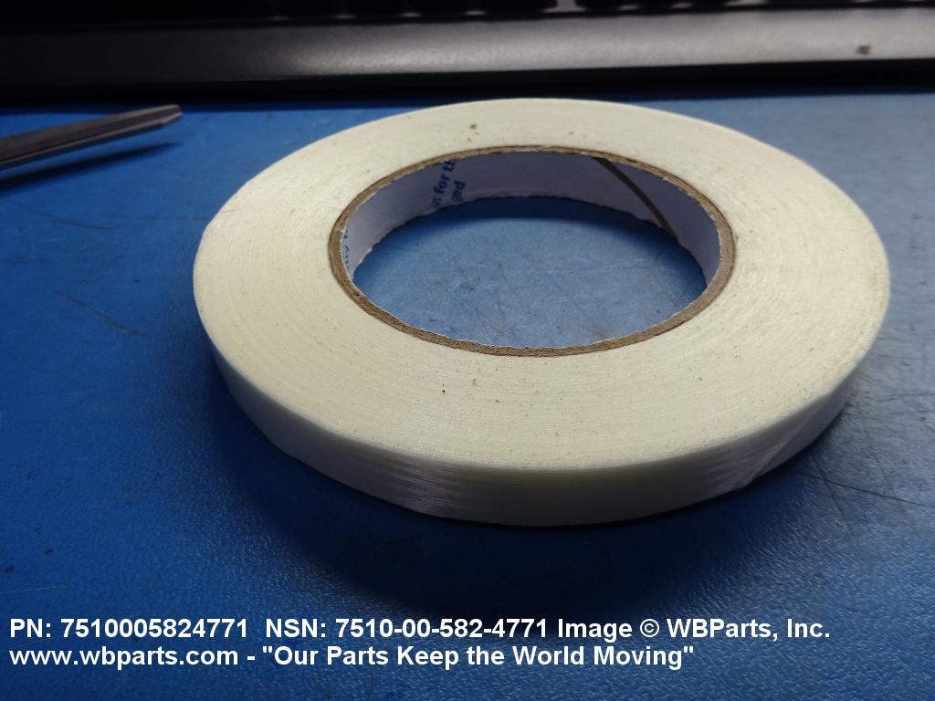 7510-00-582-4771 A flexible item in roll form, six inches (152.4mm) 0r less in width, designed to be affixed to an object by adhesion. It does not contain coding signification, legendary characters, or printed data of any type. Includes masking tape. Excludes TAPE, ADHESIVE, RUBBER; TAPE, INSULATION, ELECTRICAL; TAPE, SEMI-CONDUCTING, ELECTRICAL; and TAPE, SHIELDING, ELECTRICAL.