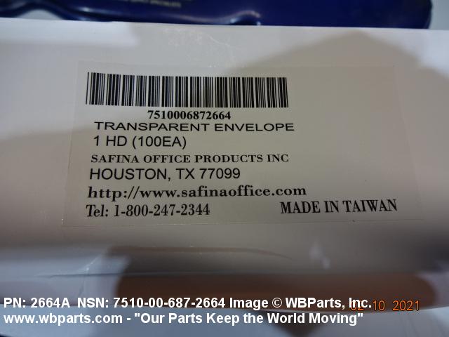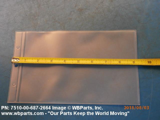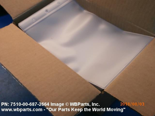 7510-00-687-2664 An envelope, made from a transparent material, usually of the open end type construction with noncorrosive metal hanging eyelet(s). It is generally used to protect blue prints, work orders, invoices, and routing data during handling, filing, and storage. Excludes ENVELOPE, MAILING; ENVELOPE, PHOTOGRAPHIC NEGATIVES; HOLDER, CARD-LABEL; and BAG (as modified).