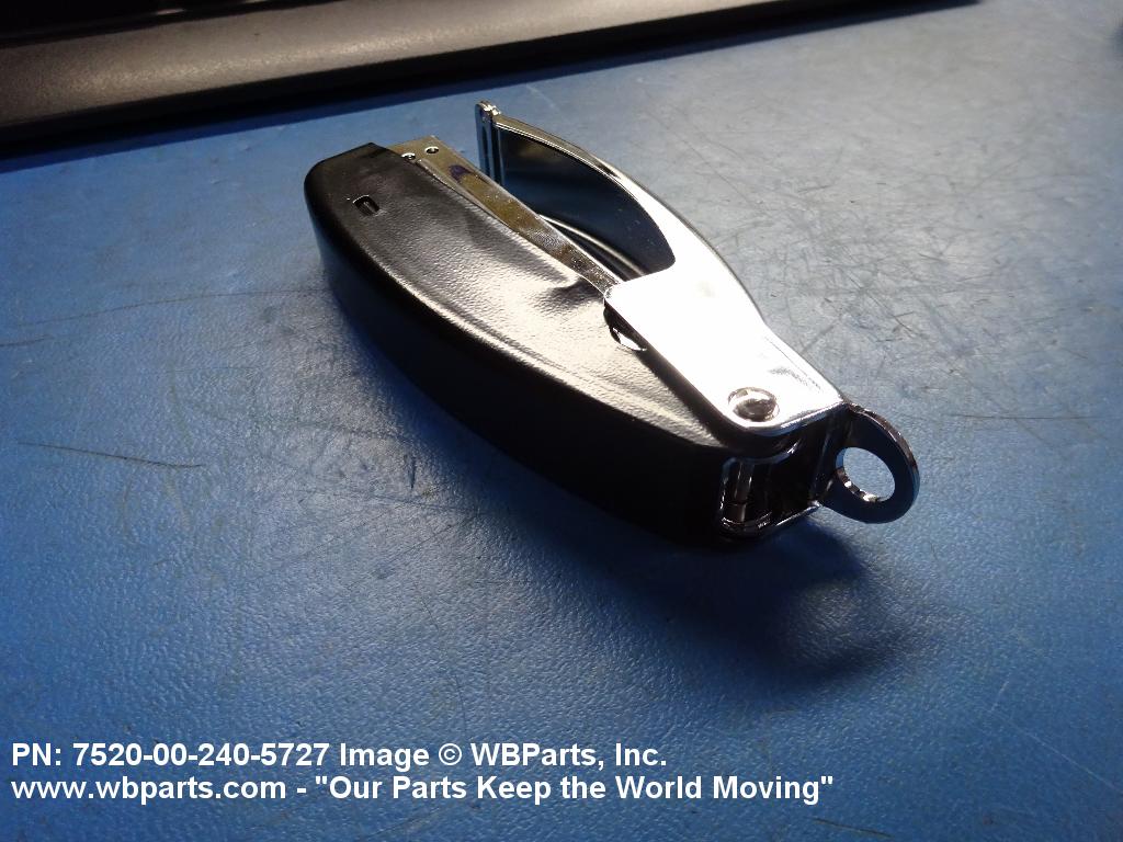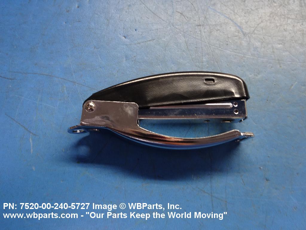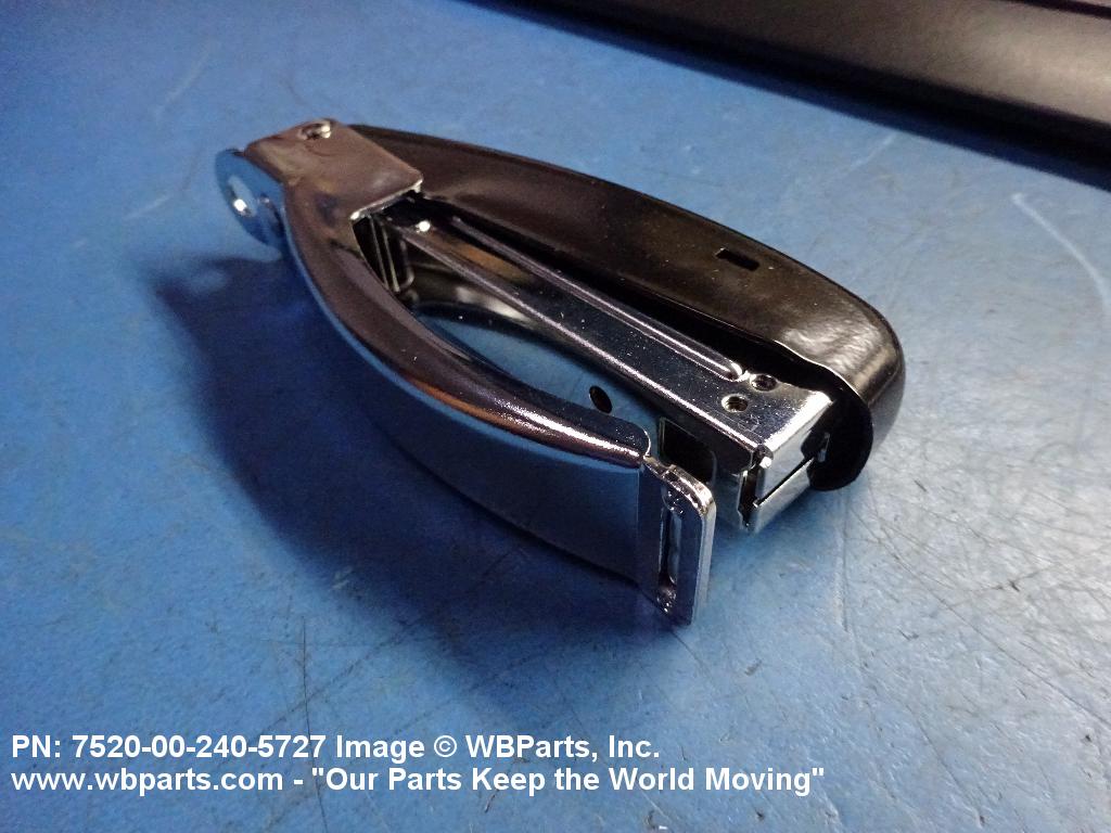 7520-00-240-5727 A plier or desk (table) item for the manual stapling of papers and the like. Excludes STAPLING MACHINE, PAPER, OFFICE and STAPLER, BOOK AND PAMPHLET.