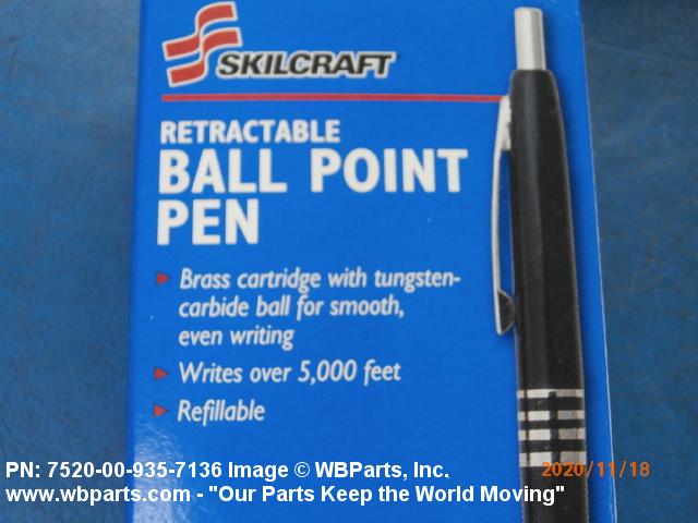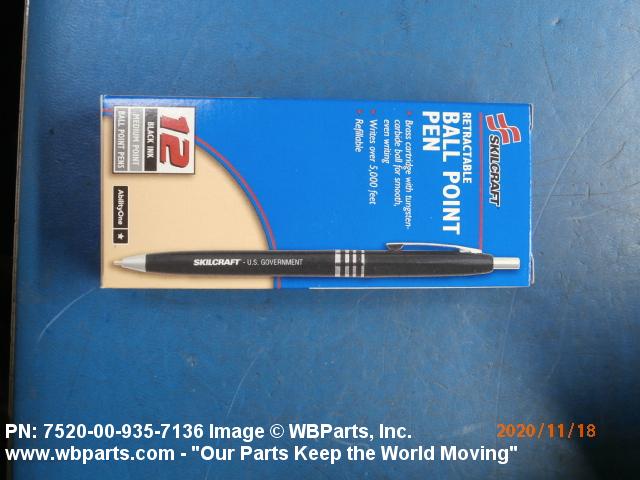 7520-00-935-7136 An item having a rotating ball writing media integral with a factory filled semiliquid ink cartridge.