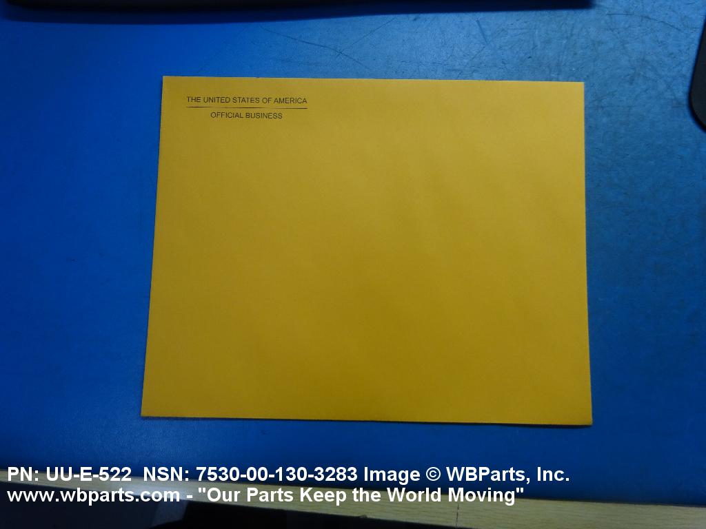 7530-00-286-6937 An envelope, usually made of a paper product. The face may be plain or preprinted with or without an open or glassine address window. The closure may be a gummed flap or a button and string fastener. When required a smaller envelope may be glued on the right face of the larger envelope. The interior may have a printed opaquing design and/or contain chipboard insert(s). It is designed for mailing correspondence/letters; records, or exposed and developed radiographic film. Excludes ENVELOPE, PHOTOGRAPHIC NEGATIVE; ENVELOPE, RADIOGRAPHIC FILM MOUNT, DENTAL; and ENVELOPE, TRANSPARENT.