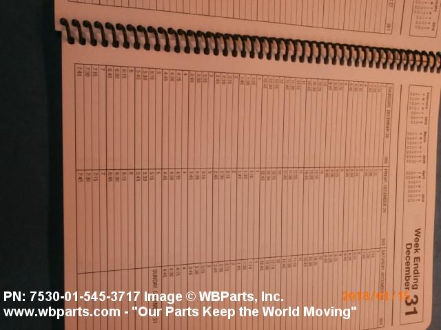 7530-01-545-3717 A bound or loose-leaf book designed for the purpose of recording or registering daily appointments. Each appointment recording sheet may have a printed legend at the top stating the day and month and may be ruled for time intervals of hour, half hour or quarter hour intervals or the like.