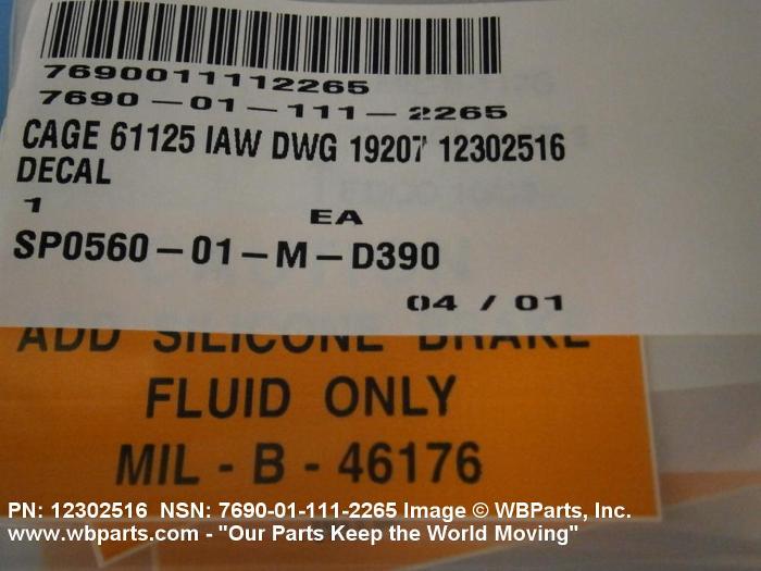 NSN 7690-01-111-2265 12302516, 01-111-2265, 011112265