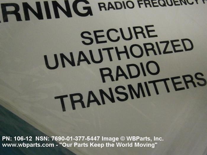 | INSCRIPTION | WARNING RADIO FREQUENCY HAZARD SECURE UNAUTHORIZED RADIO TRANSMITTERS |