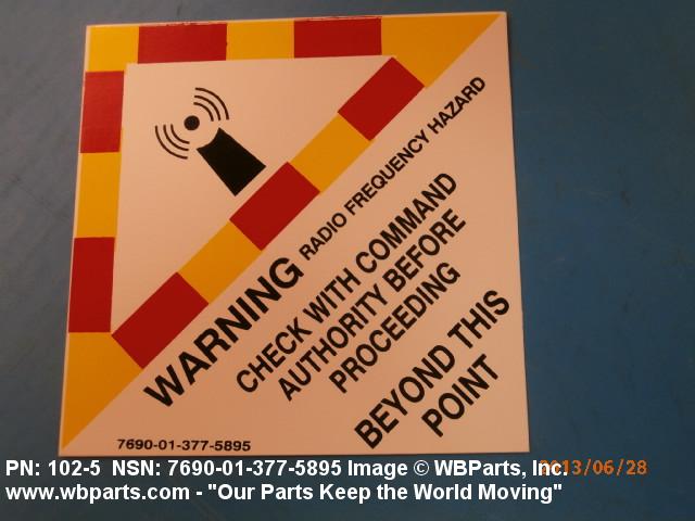 | INSCRIPTION | WARNING RADIO FREQUENCY HAZARD CHECK WITH COMMAND AUTHORITY BEFORE PROCEEDING BEYOND THIS POINT |