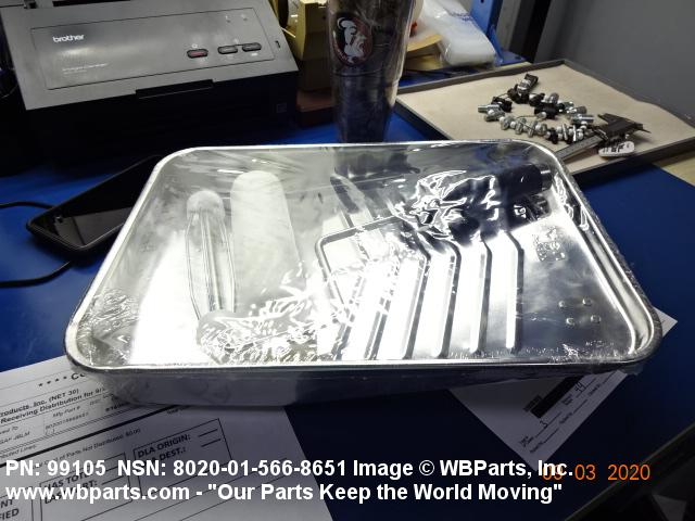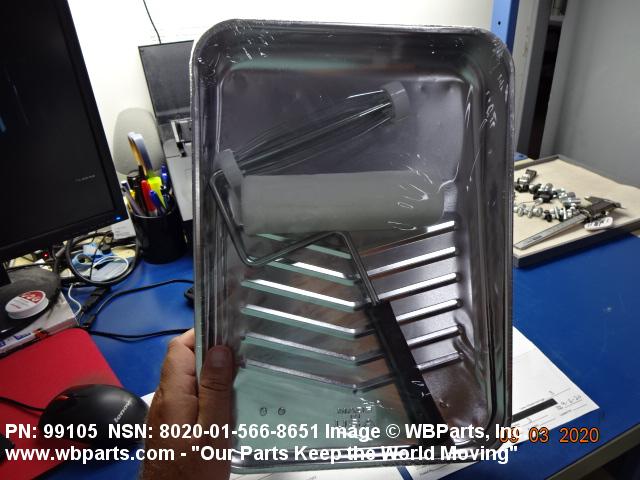 8020-01-566-8651 A group of items consisting of a lightweight roller, a loose-woven cloth cover for the roller, and a tray or pan. The cover is usually made of a lamb's wool in order to absorb and hold the paint.