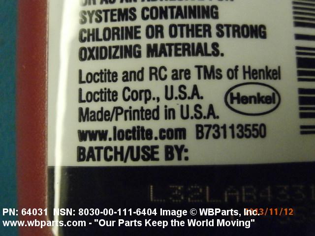 Part Alternates: MS34.50-01-40, MS34500140, ASTM D5363 , ASTM D5363 AN0412 P13 , ASTMD5363, ASTMD5363AN0412P13, CYLINLOCK 826, CYLINLOCK826, INSTABOND 248 , INSTABOND248, MILR46082, MIL-R-46082, MIL-R-46082 TY2, MILR46082TY2, 2-300-658-01, 2571650306, 25716503-06, 64031, 9S3265, 8030-00-111-6404, 00-111-6404, 8030001116404, 230065801, 001116404