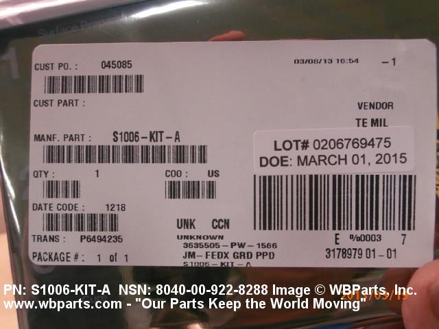 NSN 8040-00-922-8288 S1006, S-1006, S-1006 KIT A