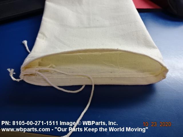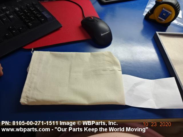 8105-00-271-1511 A container having an identification tag affixed to one end and a drawstring closure at the opposite end.