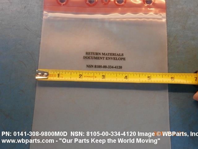 | SPECIAL FEATURES | O&A SIZE 9.750 IN. LG BY 5.750 IN. W,BRIGHT RED PLASTIC REINFORCING STRIP 1.125 IN. BY 5.750 IN. LOCATED ABOVE SEAL CLOSURE,FOUR 0.312 IN. DIA HOLES SPACED 1.375 C TO C AND ONE 0.125 IN. DIA HOLE LOCATED ON REINFORCING STRIP,EMBOSSED WITH&RETURN MATERIALS DOCUMENT ENVELOPE AND FSN |