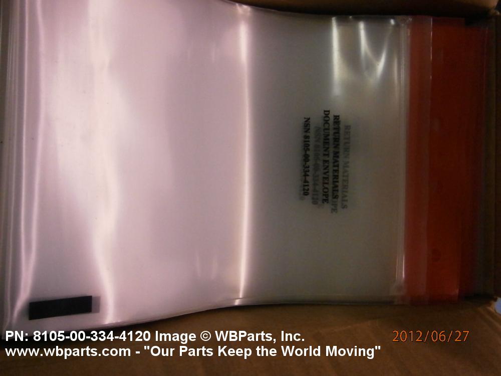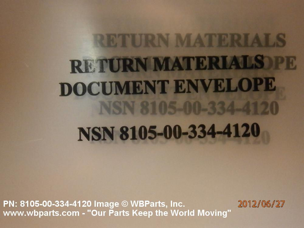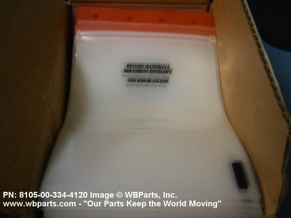 8105-00-334-4120 An envelope used for holding a packing list and placed inside or attached to the outside of a shipping container.