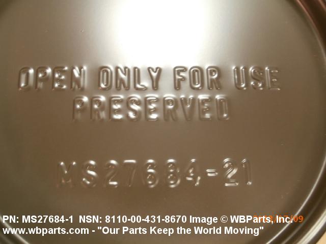 NSN 8110-00-431-8670 MS276841, MS27684-1, MILD6054
