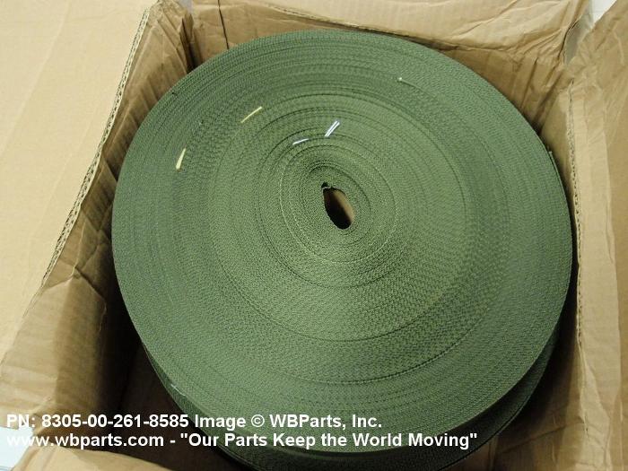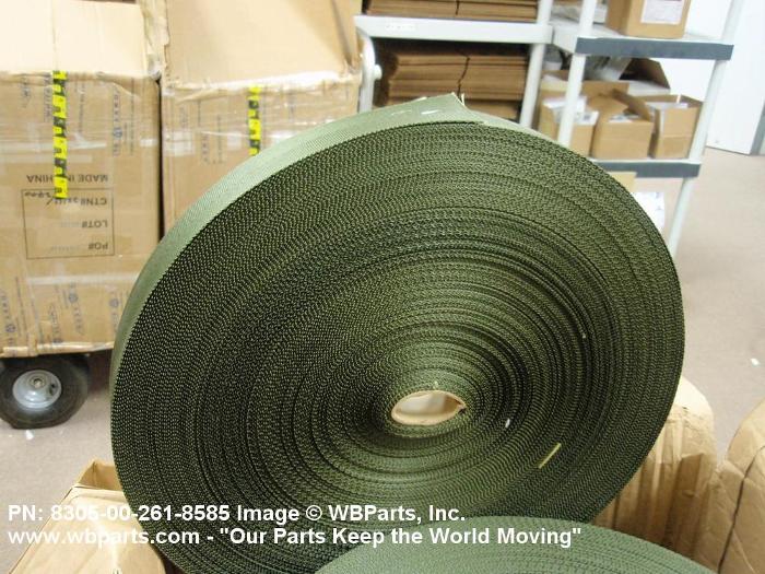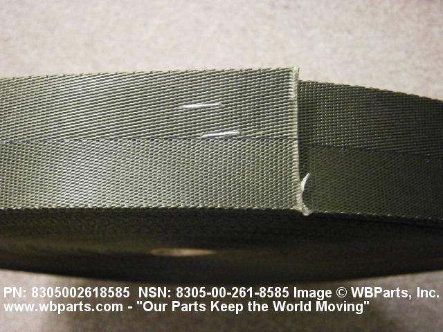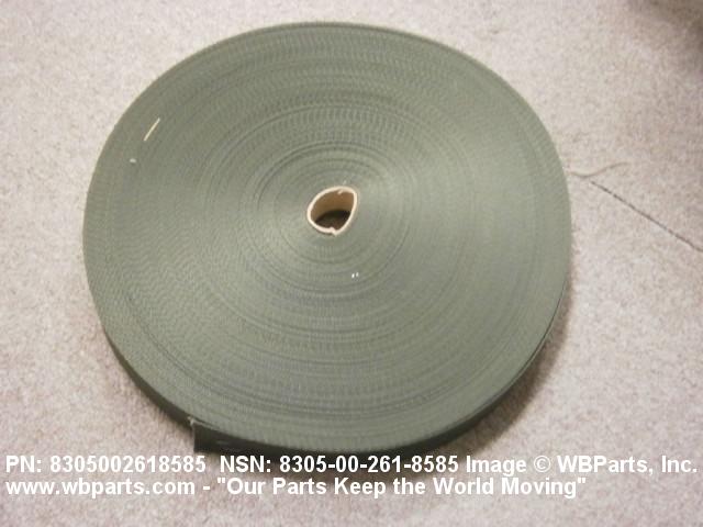 8305-00-261-8585 A strong closely woven or knitted narrow fabric, in width up to and including 12 inches (304.8 millimeters), which may be made of cotton, jute, hemp, linen, nylon, and the like. It may have elastic strands. It may be of tubular construction or have two selvage edges. Excludes BRAID, TEXTILE.