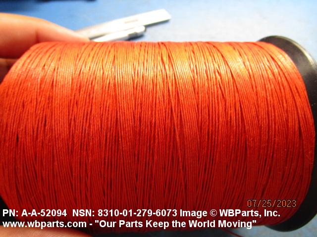 8310-01-279-6073 A thin, twisted, smooth, strand or filament of vegetable, animal, mineral or synthetic material spun out to considerable length. It is produced in single ply, or two or more plies twisted together in a variety of diameters and colors. Used mainly for stitching fabrics. See also THREAD, GIMP.