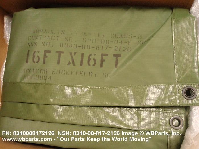 8340-00-817-2126 A fabricated textile or plastic item, generally used as a weather protection cover for various items and/or material during storage or transit. Excludes COVER, TENT.20225400035Vehicular Furniture and Accessories83400020Tents and Tarpaulins