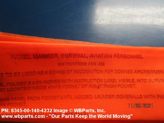 8345-00-140-4232 A plain or multicolored cloth which is usually rectangular. It is used to indicate restricted areas or strategic positions. It may have an emblem or a design. It is always in a fixed position either prone or upright. It is never used to indicate nationality, honor, party, organization or the like.