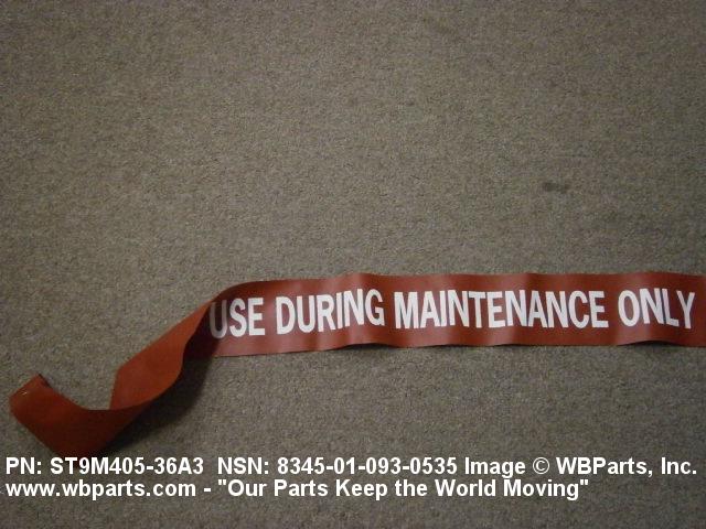 8345-01-093-0535 A narrow strip of brightly colored material, with or without attaching hardware. It is designed for attachment to specific locations of aircraft, guided missiles, space vehicles, rockets, tanks, tractors, trucks and the like, to warn that certain preoperation functions are required. It may include precautions written, painted or sewed theron. Excludes MARKER (as modified), TAG (as modified), PIN, GROUND SAFTEY; and PIN SET, GROUND SAFTEY.