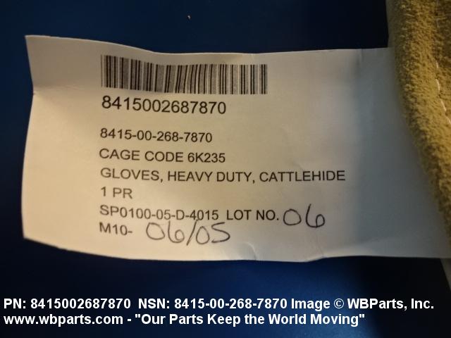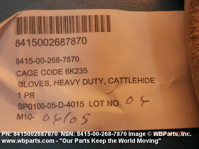 8415-00-268-7870 Gloves designed to be worn by males/females past the age of physical maturity.20284150025Clothing, Special Purpose84400050Hoisery, Handwear, and Clothing Accessories, Men's