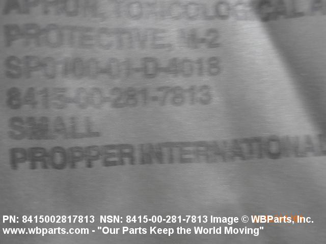 8415-00-281-7813 An apron designed to be worn for the protection of personnel working in areas contaminated by toxicological agents.