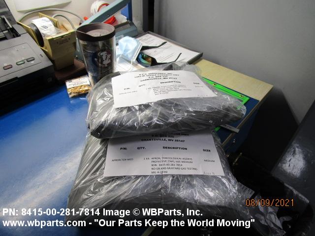 8415-00-281-7814 An apron designed to be worn for the protection of personnel working in areas contaminated by toxicological agents.