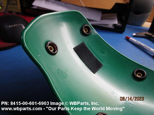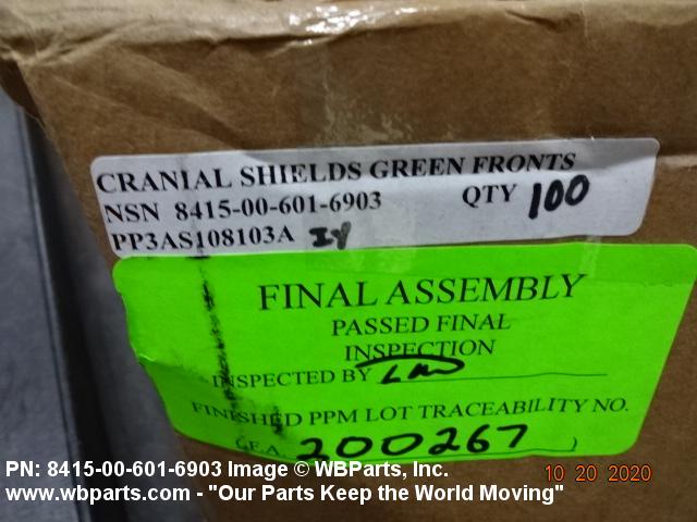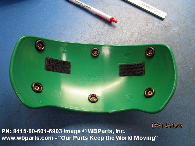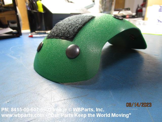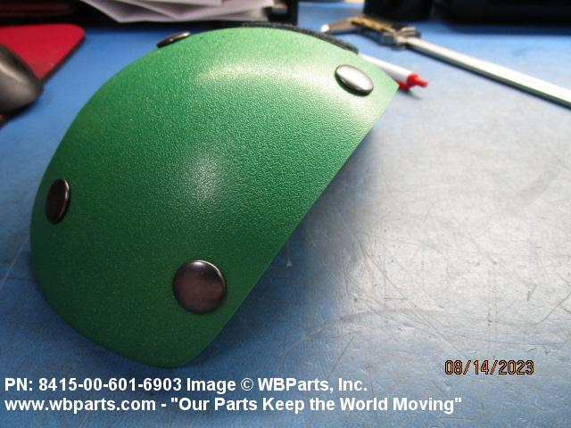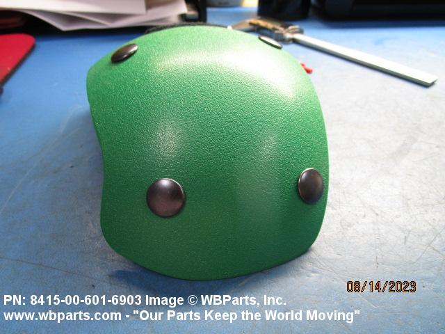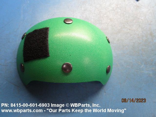 8415-00-601-6903 An item with attaching facilities made of materials having impact resisting qualities designed to afford protection in preventing head injuries. They may be die cut or molded to conform to the shape of the head covering, and indicates by its color, the specific duties performed by the wearer.