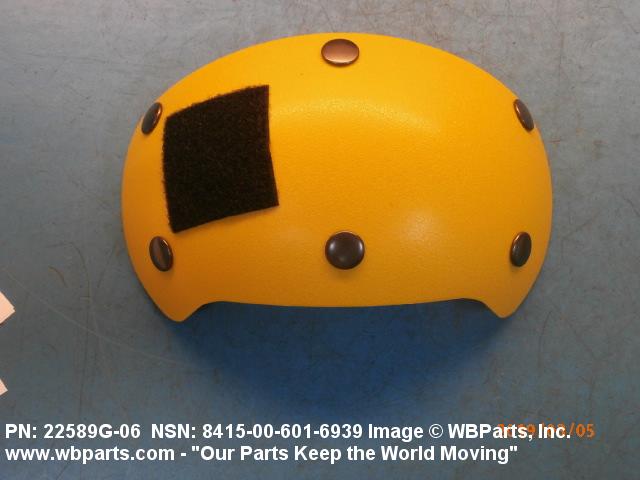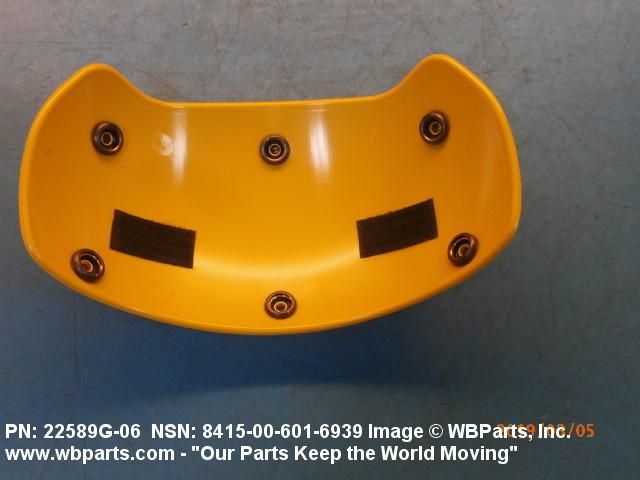8415-00-601-6939 An item with attaching facilities made of materials having impact resisting qualities designed to afford protection in preventing head injuries. They may be die cut or molded to conform to the shape of the head covering, and indicates by its color, the specific duties performed by the wearer.