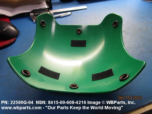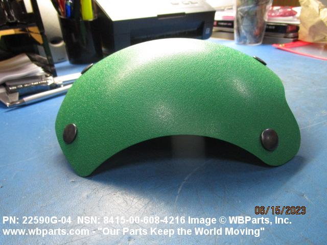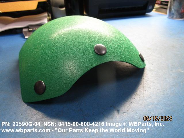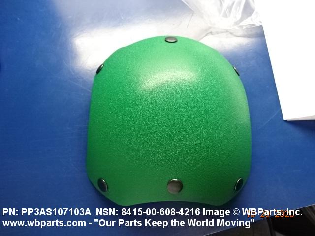 8415-00-608-4216 An item with attaching facilities made of materials having impact resisting qualities designed to afford protection in preventing head injuries. They may be die cut or molded to conform to the shape of the head covering, and indicates by its color, the specific duties performed by the wearer.