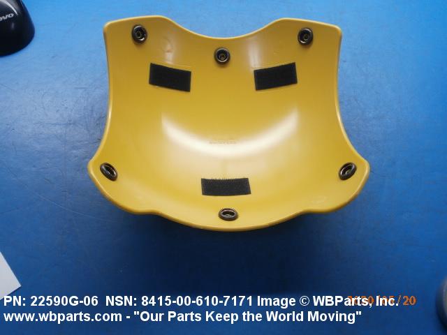 8415-00-610-7171 An item with attaching facilities made of materials having impact resisting qualities designed to afford protection in preventing head injuries. They may be die cut or molded to conform to the shape of the head covering, and indicates by its color, the specific duties performed by the wearer.