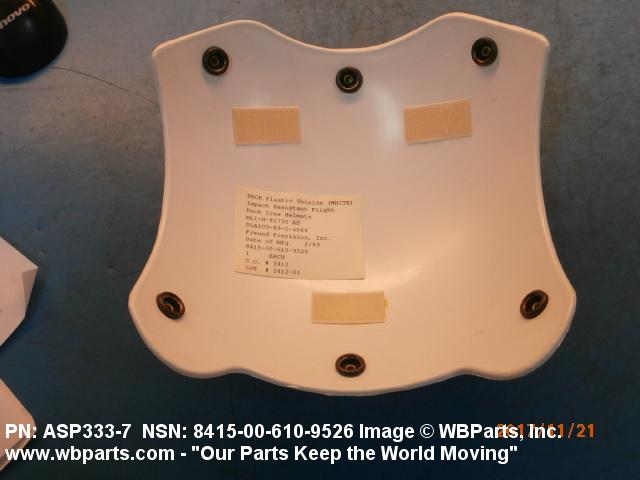 8415-00-610-9526 An item with attaching facilities made of materials having impact resisting qualities designed to afford protection in preventing head injuries. They may be die cut or molded to conform to the shape of the head covering, and indicates by its color, the specific duties performed by the wearer.