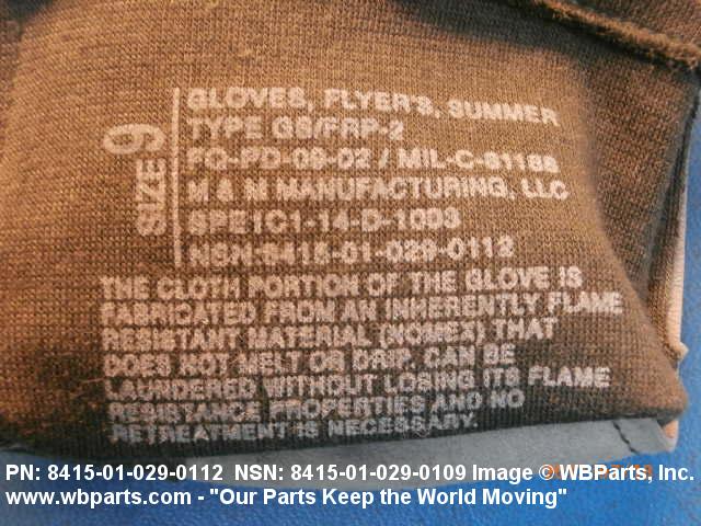 8415-01-029-0112 Gloves specifically designed for use by flying personnel to provide adequate warmth in any of several temperate zones.