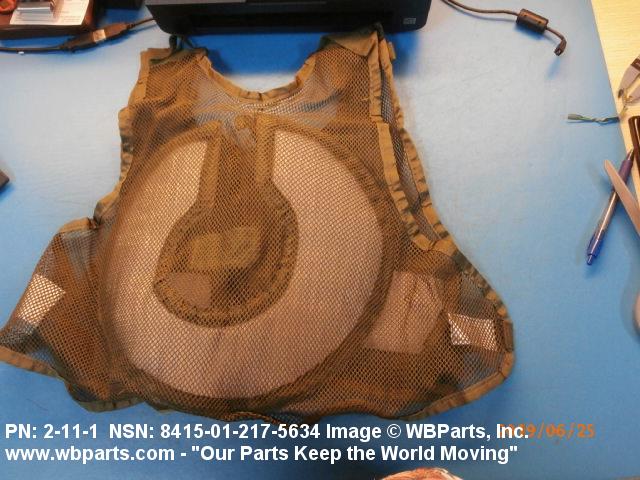 | GENERAL CHARACTERISTICS ITEM DESCRIPTION | ARAMID KNITTED W/BODY CONDITIONED AIR DISTRIBUTION ACCESSORIES TO DISTRIBUTE CONDITIONED AIR OVER WEARER'S TORSO; TO BE WORN UNDER CHEMICAL PROTECTIVE GARMENT IN M1A1 US ARMY TANKS; UNIVERSAL SIZE |