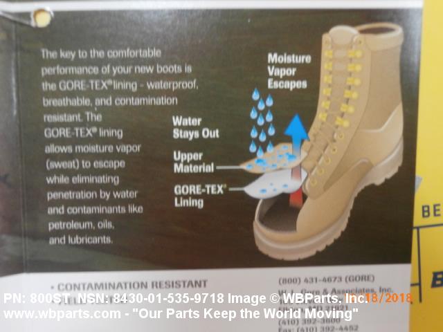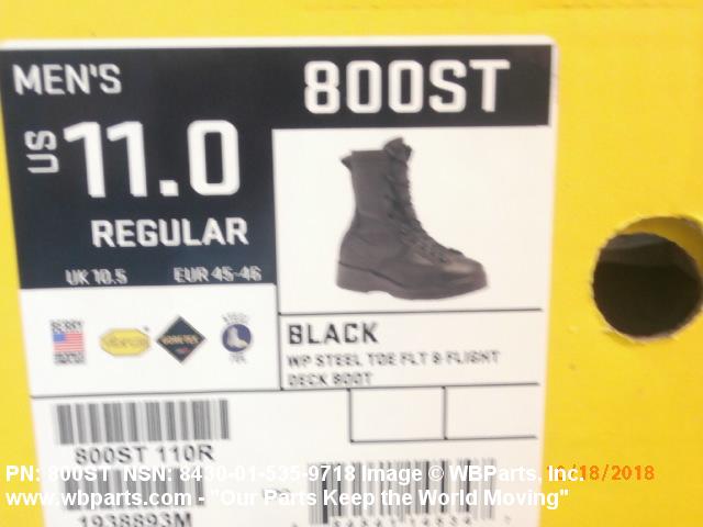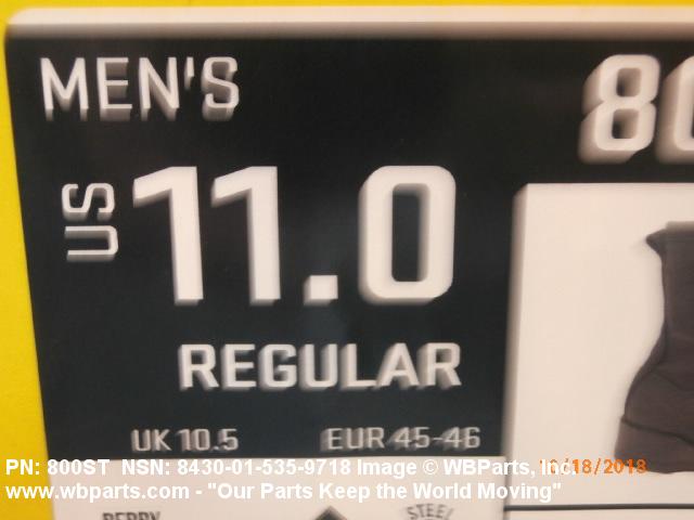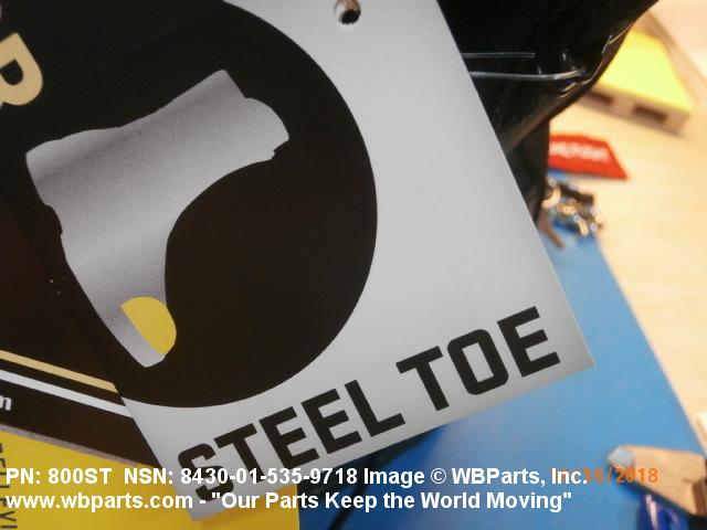 8430-01-535-9605 Footwear having safety features, such as steel box toes, or equivalent, nonslip heels and soles, and/or instep guards. They are worn to provide protection to the feet from an impact force and to prevent injury from falls due to slipping. Designed to be worn by males past the age of physical maturity. Excludes BOOTS, CLIMBERS'.