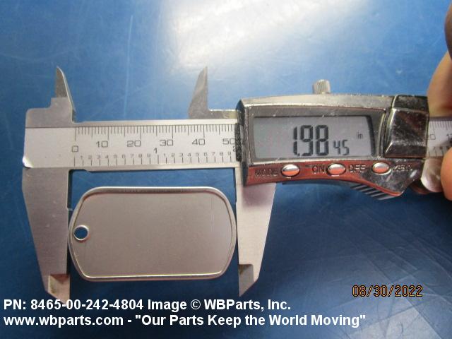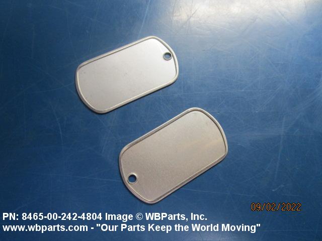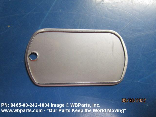 8465-00-242-4804 An item used for the purpose of personnel identification. It may or may not be inscribed. It has a hole or other means of attaching to the person. Excludes TAG, IDENTIFICATION, ANIMAL.