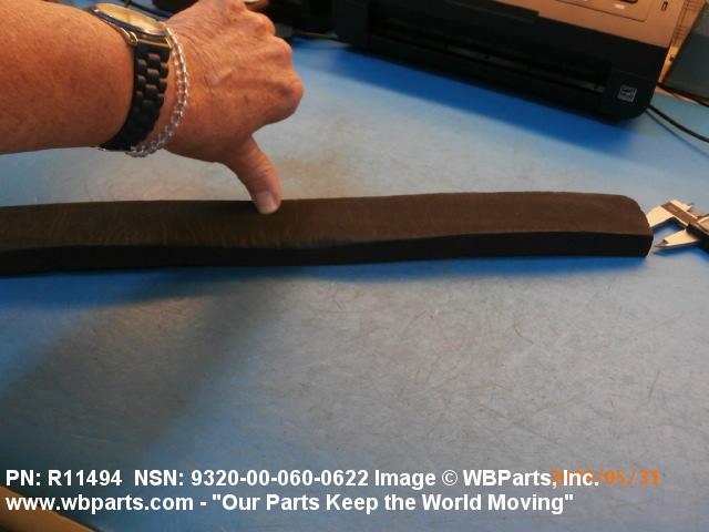 9320-00-060-0622 An elastic material of compact (solid) or cellular structure having smooth, crepe or porous surface(s) and having an oval, parallelogram, square, rectangular or D-shaped cross section. It is produced in various thicknesses. Strips are limited to widths of 6 inches (152.4mm) or less. It may or may not have a nonrubber backing or a wire cloth or cord insert. For items having a round cross section, see RUBBER ROUND SECTION. Excludes RUBBER SHEET, INNER TUBE REPAIR. See also NONMETALLIC ANGLE; NONMETALLIC CHANNEL; NONMETALLIC SPECIAL SHAPED SECTION.20253300028Packing and Gasket Materials93200027Rubber Fabricated Materials
