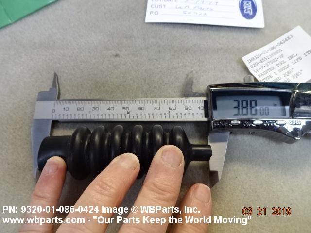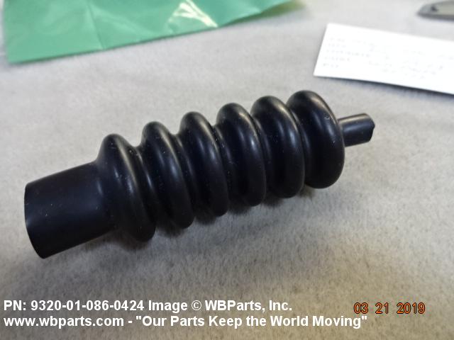 9320-01-086-0424 A nonmetallic, accordian shaped protective covering designed to flex due to relative motion between parts to which its opposite ends are attached. It is primarily used to cover the opening around a movable push-pull rod or part passing through a hole in a bulkhead, partition or the like.20353400020Hardware, Commercial53420023Hardware, Weapon System93900046Miscellaneous Fabricated Nonmetallic Materials