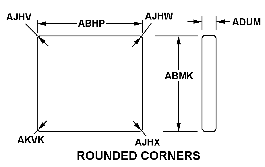 | FOURTH CORNER RADIUS | 0.190 INCHES NOMINAL |