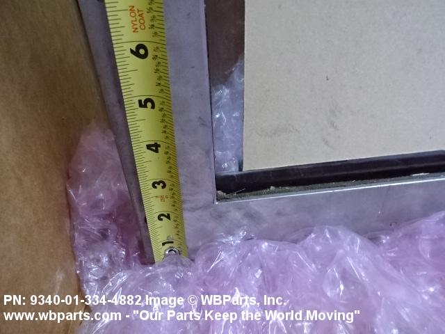 9340-01-334-4882 A transparent item of a predetermined size that permits unobstructed and undistorted view of a desired area. It may include a frame, have reference markings, grid lines and may be heat strengthened and/or tinted. It is generally used where safety, security, and/or the restriction of foreign matter are required, such as the visual examination of the inside of pressurized tanks, liquid sights, controlled liquid flow, and inspection of equipment enclosed in a housing. See WINDOW (as modified); SCALE, CATHODE RAY TUBE; SCALE, PLOTTING; WINDOW, METAL; WINDOW, WOOD; and WINDOW PANEL, AIRCRAFT.20293300029Plastics Fabricated Materials93400026Glass Fabricated Materials