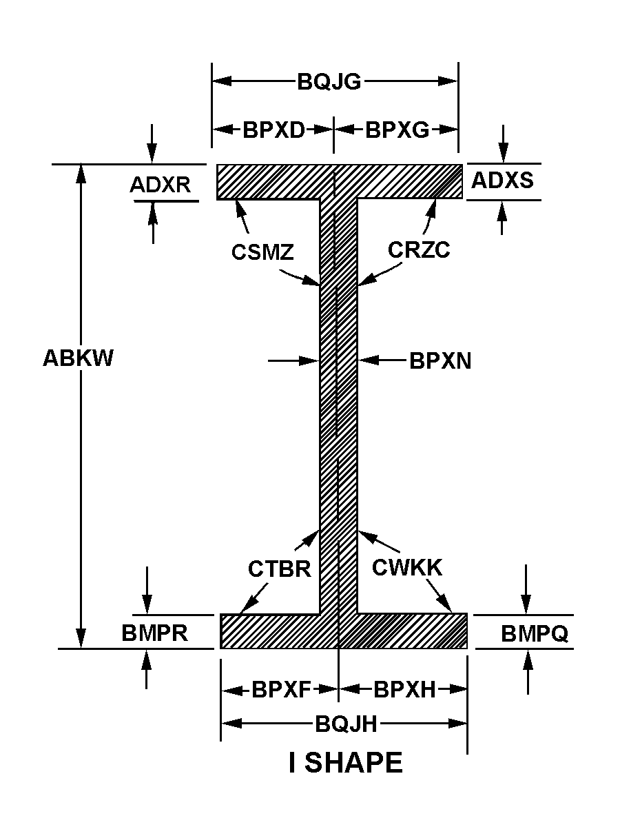 9520-01-532-5655 A structural shape fabricated from a ferrous or nonferrous material and resembles the following cross-sectional forms: For the letter H, both flanges of the H section are equal or longer than the width measured along the axis of the web; for the letter I, a 16 2/3 percent slope on the inside face of the ferrous type flange, either one or both of the nonferrous type flanges are shorter than the length measured along the axis of the web; for the letters T and Z, on nonferrous type, the web is usually at right angles to the flanges. Letter H section may have a maximum of 5 percent slope on the inside face of the flanges.20295200017Structural Shapes95400040Structural Shapes, Nonferrous Base Metal