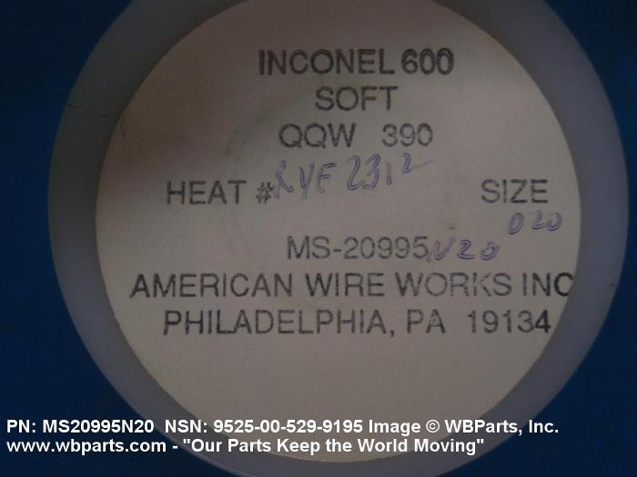 Part Alternates: MS2099520, MS20995-20, MS20995N20, MS20995-N20, NASM20995N20, ASTM B166, ASTMB166, QQW390, QQ-W-390, 9525-00-529-9195, 00-529-9195, 9525005299195, 005299195
