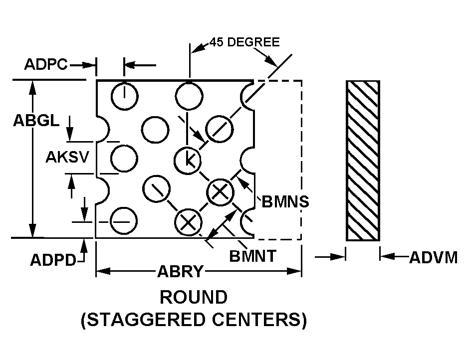 | DISTANCE FROM FIRST HOLE CENTERLINE TO END ALONG WIDTH | ANY ACCEPTABLE |