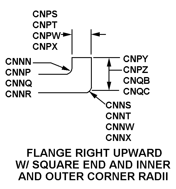 | SECOND TIP STYLE | 78 FLANGE RIGHT UPWARD WITH SQUARE END AND INNER AND OUTER CORNER RADII |