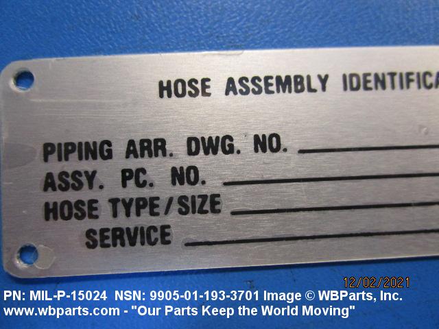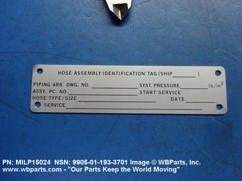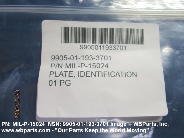 9905-01-193-3700 An item which is rigid or semi-rigid, generally flat and smooth designed to be attached to an item and provides data such as name/nomenclature, weight, tire pressure, dimensional data and the like. See also MARKER,IDENTIFICATION; PLATE,DESIGNATION; PLATE,INSTRUCTION; PLATE SET,IDENTIFICATION; and TAG,MARKER. Excludes LABEL.202259000009905000000