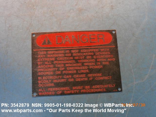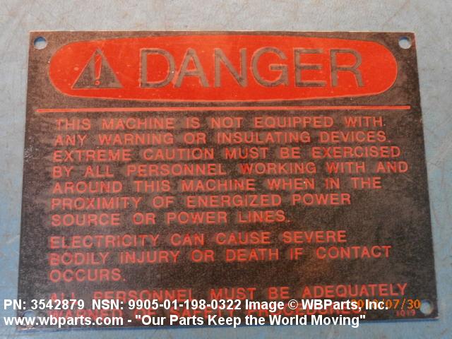 | INSCRIPTION | DANGER THIS MACHINE IS NOT EQUIPPED WITH ANY WARNING OR INSULATING DEVICES. EXTERME CAUTION MUST BE EXERCISEDBY ALL PERSONNEL"PARTIAL LEGEND" |