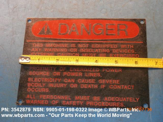 9905-01-198-0322 An item which is rigid or semirigid, generally flat and smooth. Its thickness is small in comparison to its length and width. It has data thereon indicating method of operation, maintenance, and/or personnel protection. See also MARKER, IDENTIFICATION; PLATE, IDENTIFICATION; PLATE, DESIGNATION; PLATE SET, INSTRUCTION; DECAL; and LABEL. For items having the combination function of a PLATE, INSTRUCTION and PLATE, IDENTIFICATION, see PLATE, IDENTIFICATION. Excludes TAG, INSTRUCTION.