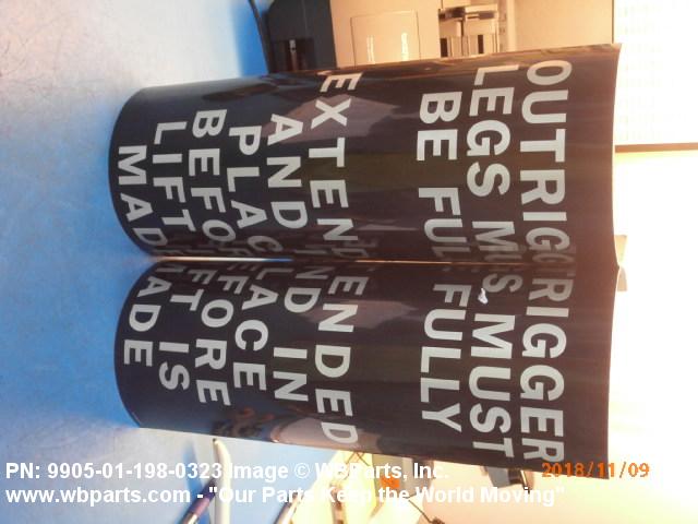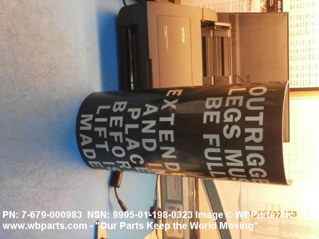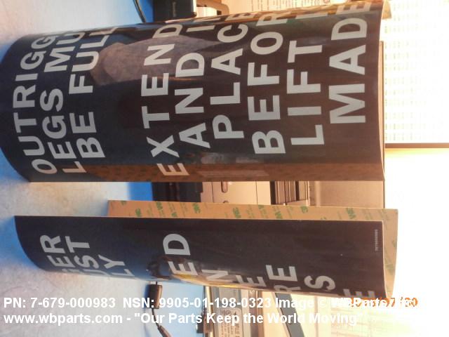 9905-01-198-0323 An item which is rigid or semirigid, generally flat and smooth. Its thickness is small in comparison to its length and width. It has data thereon indicating method of operation, maintenance, and/or personnel protection. See also MARKER, IDENTIFICATION; PLATE, IDENTIFICATION; PLATE, DESIGNATION; PLATE SET, INSTRUCTION; DECAL; and LABEL. For items having the combination function of a PLATE, INSTRUCTION and PLATE, IDENTIFICATION, see PLATE, IDENTIFICATION. Excludes TAG, INSTRUCTION.