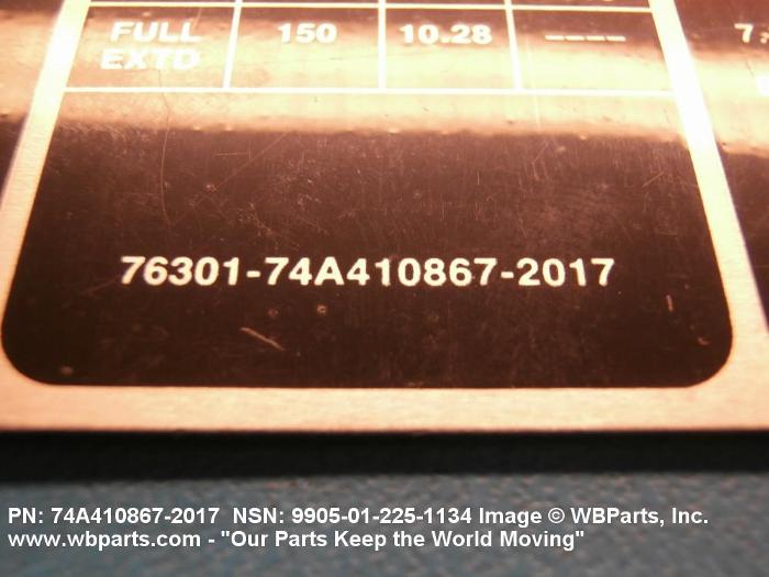 NSN 9905-01-225-1134 10154579 , 74A4108672017, 74A410867-2017