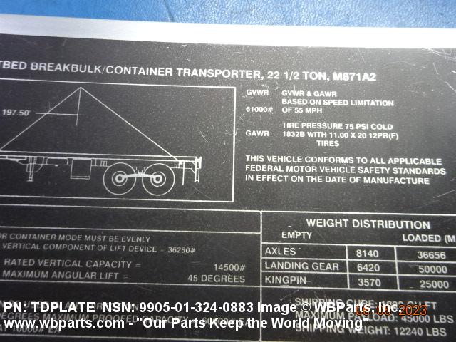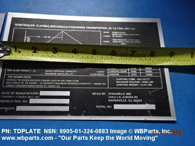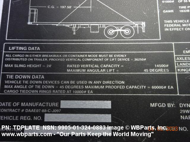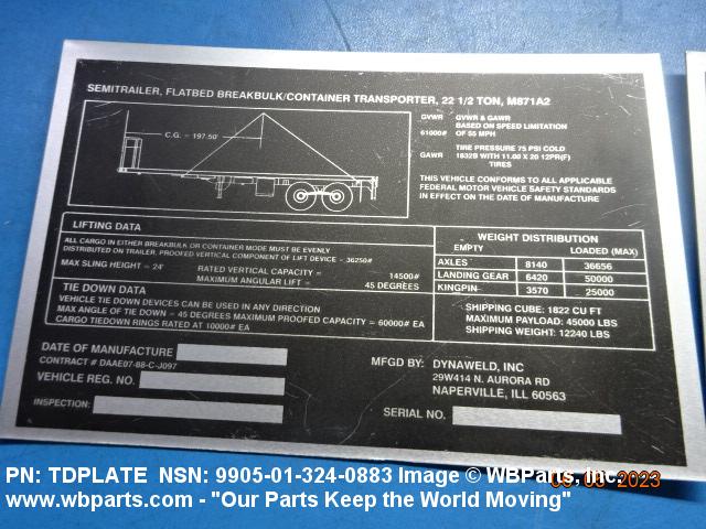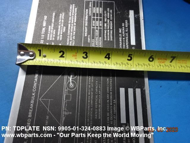 Part Alternates: TDPLATE, 9905-01-324-0883, 01-324-0883, 9905013240883, 013240883
