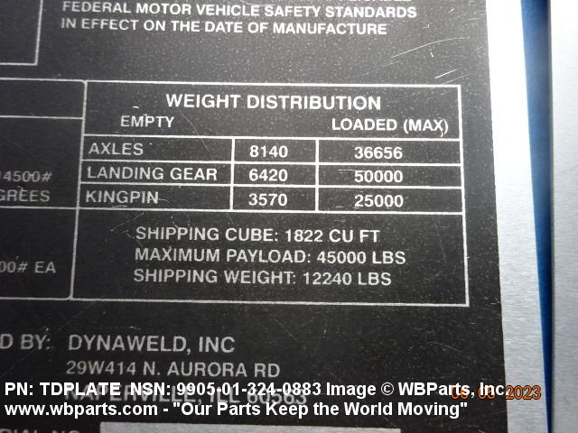 | INSCRIPTION | LIFTING DATA DO NOT LIFT A LOADED SEMITRAILER ALL CARGO IN EITHER BREAKBULK OR CONTAINER MODE MUST BE EVENLY DISTRIBUTED ON"PARTIAL LEGEND" |
