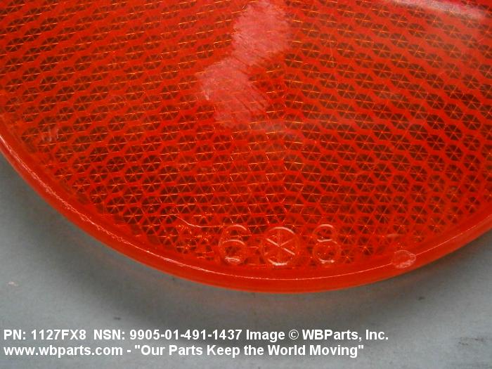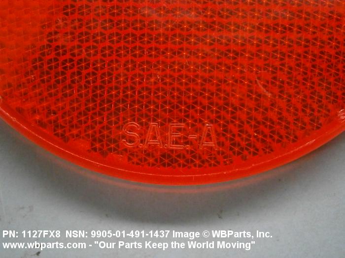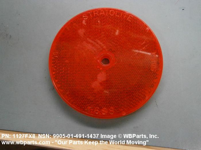 9905-01-491-1437 An item of colored glass or plastic usually having a frame or case and mounted on a vehicle or stationary object, designed to give warning by refracted light from the lamp on an approaching vehicle.